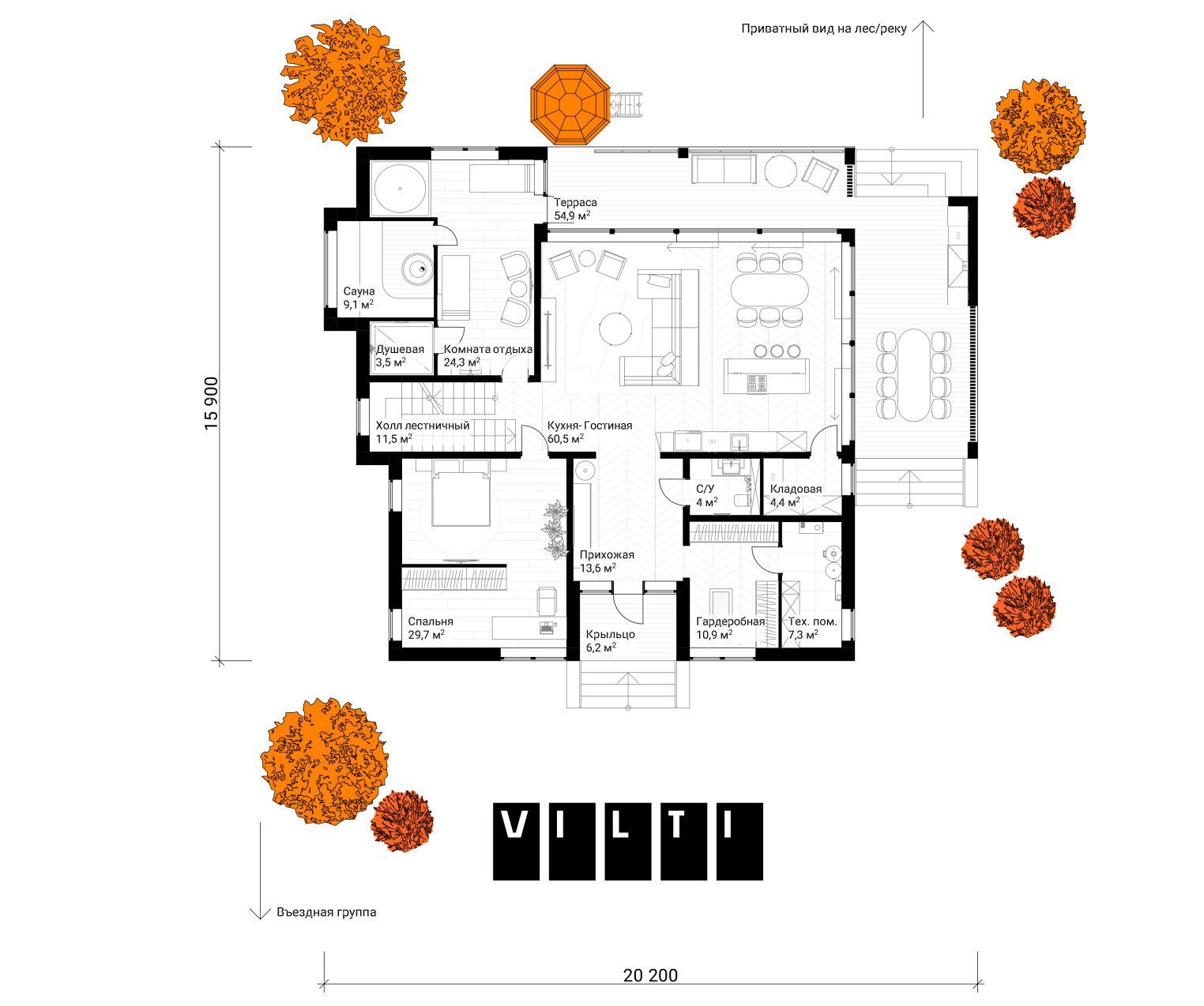общая площадь (теплый контур + КТБП) — 273,4 м2